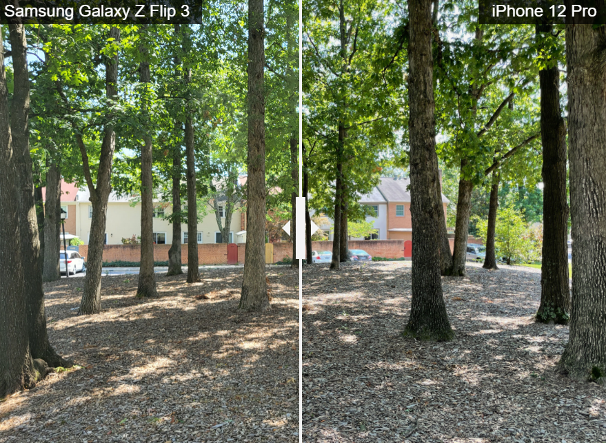두 사진 모두 놀라울 정도로 비슷하지만 플립 3의 사진에서 색상을 과도하게 채우려는 삼성의 경향을 엿볼 수 있습니다. iPhone은 좀 더 톤 다운된 상태를 유지했습니다. 결과 이미지는 Flip 3만큼 밝지는 않지만 색상이 더 자연스럽고 정확합니다.