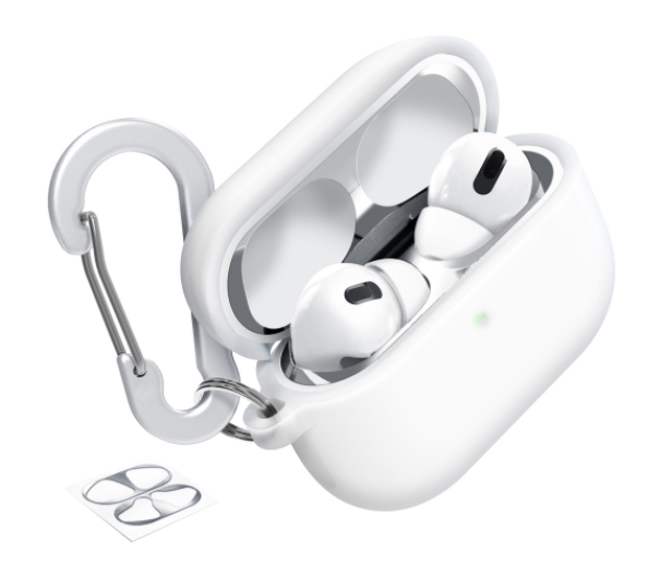 누아트 스무디 에어팟프로 실리콘 키링케이스 + 메탈철가루 방지스티커 랜덤 발송, 단일 상품, 미드나잇그린